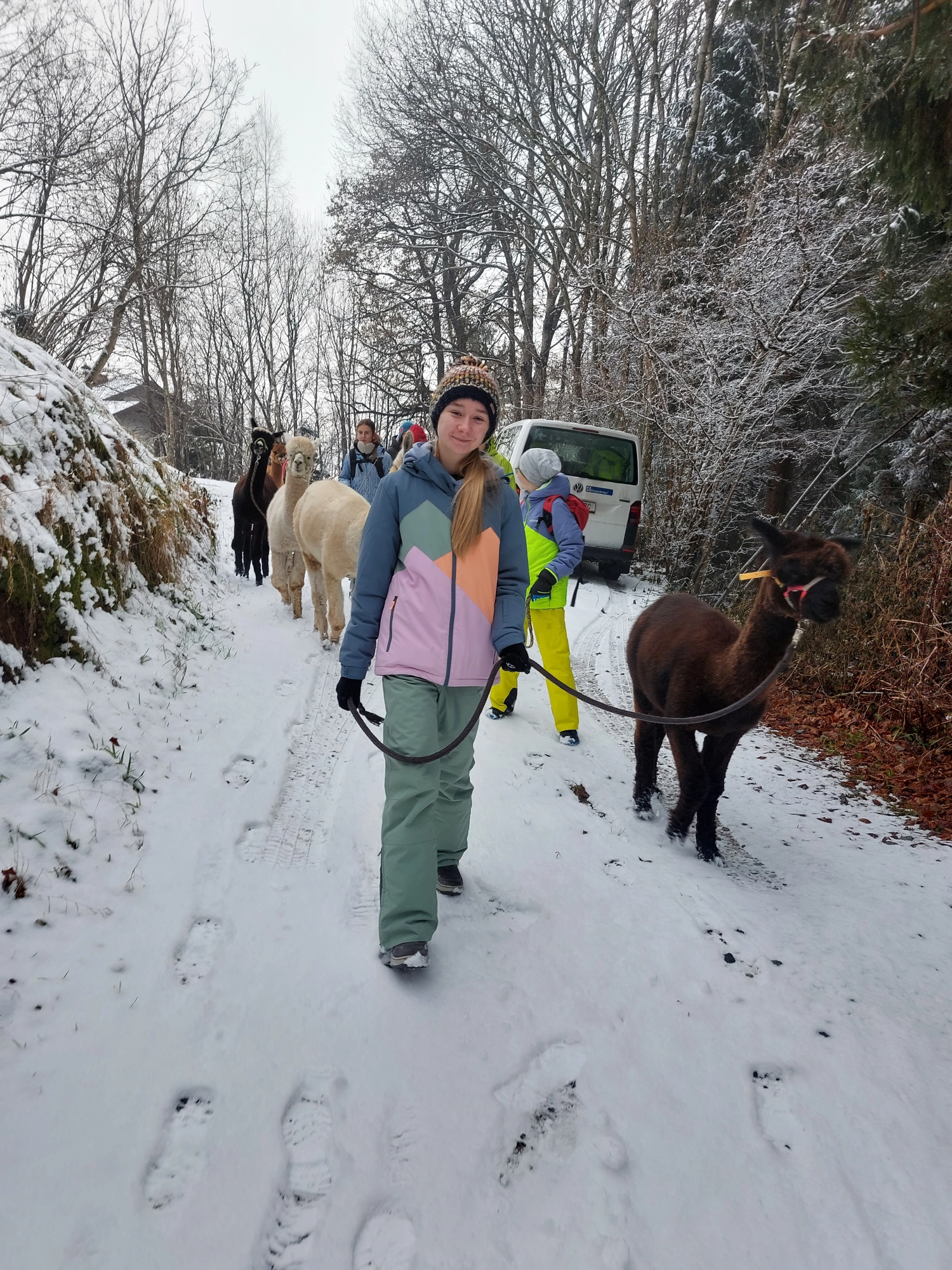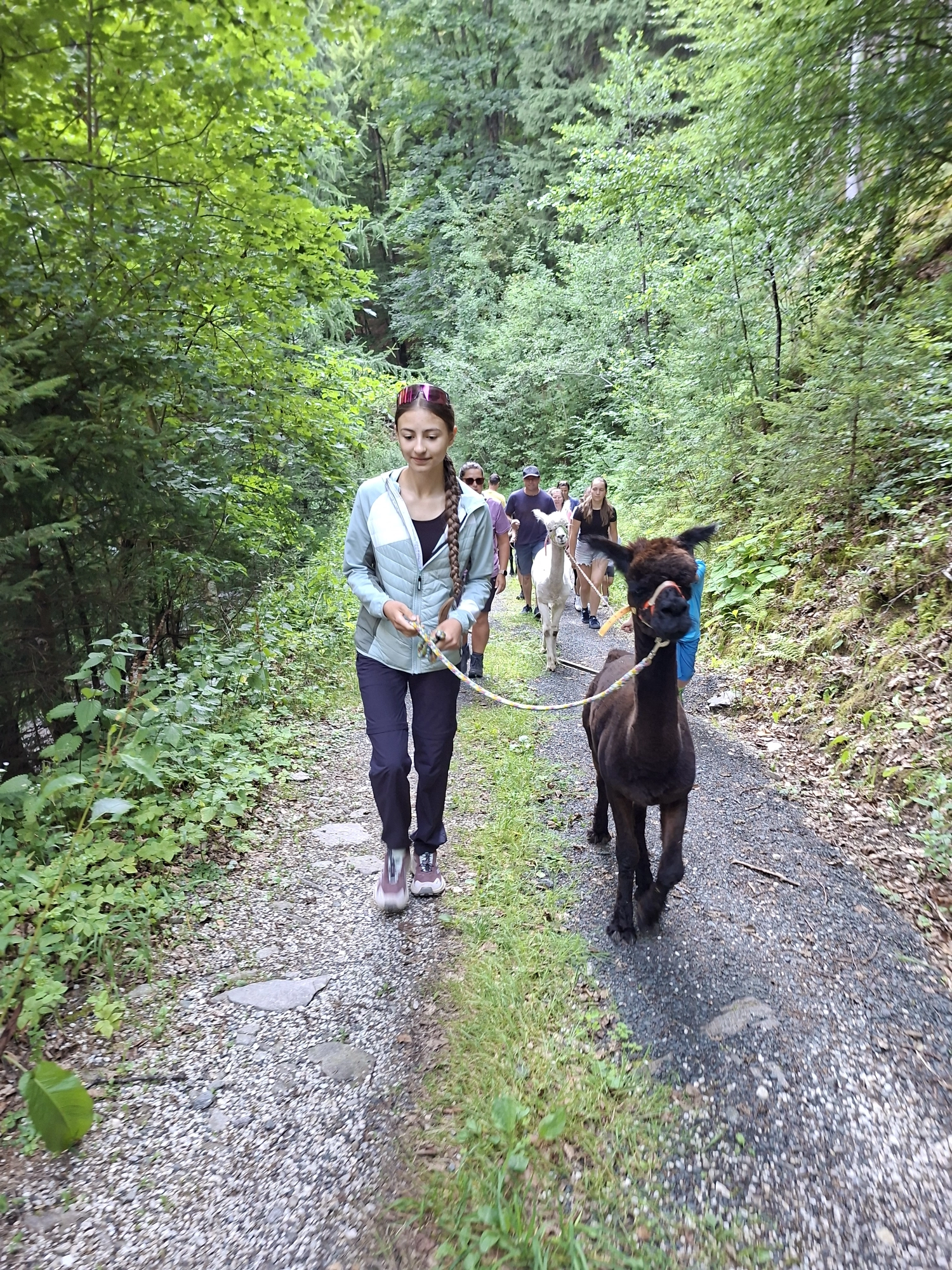 Unsere Alpaka-Wanderungen dauern ca. 1 bis 2 Stunden, je nach Wahl der Route. Dabei legen wir größten Wert darauf, möglichst wenig Begegnungen mit Autos zu haben, indem wir hauptsächlich auf Forstwegen unterwegs sind. Im Anschluss an die Wanderungen gibt es noch eine kleine Hofführung mit vielen spannenden Details über Alpakas.